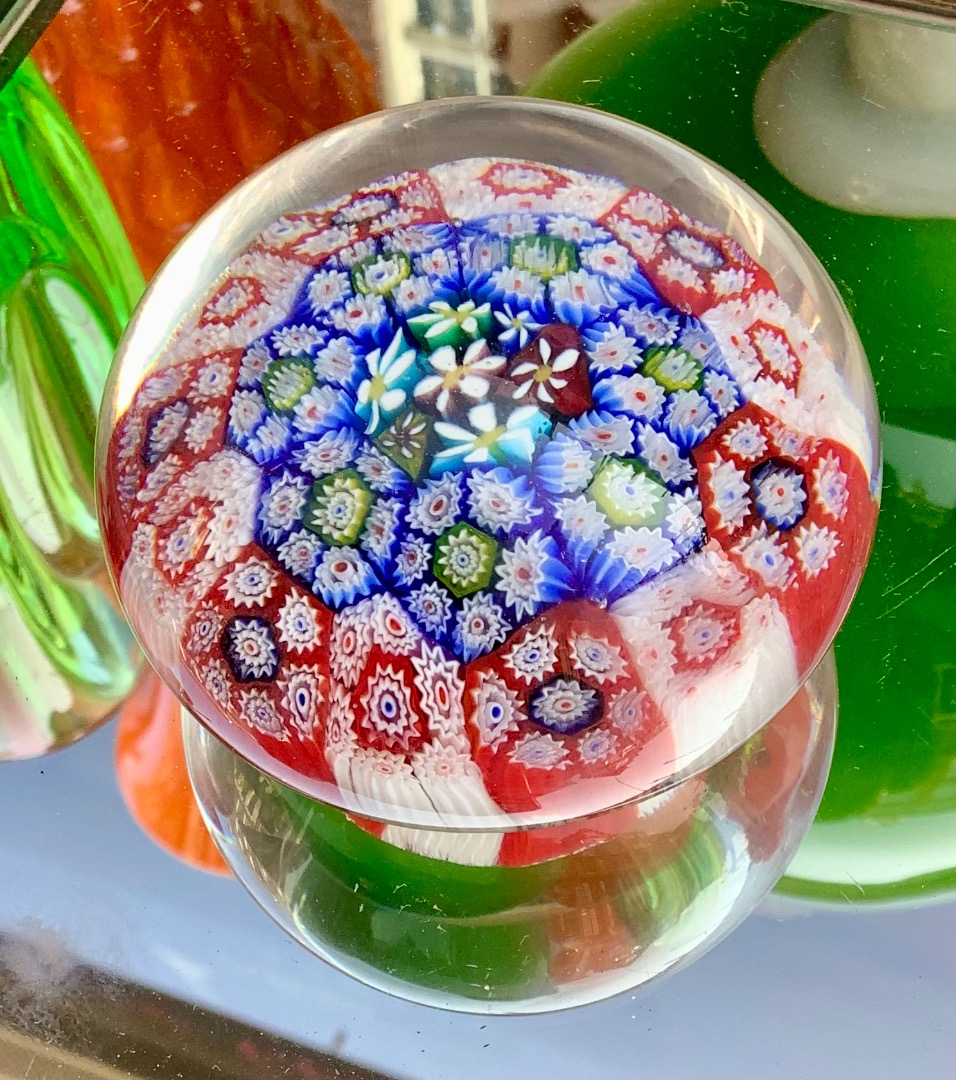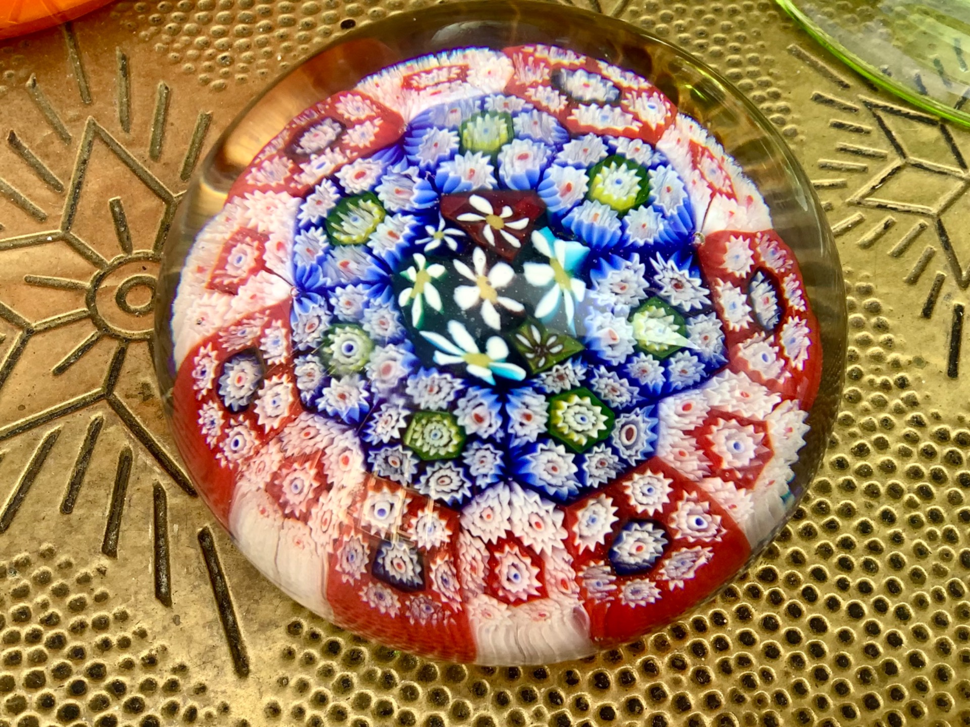 Helder glas met mooie millefiori murrines in sprankelende kleuren.