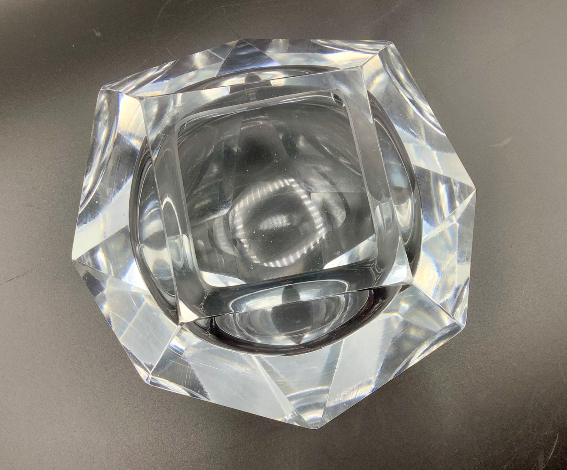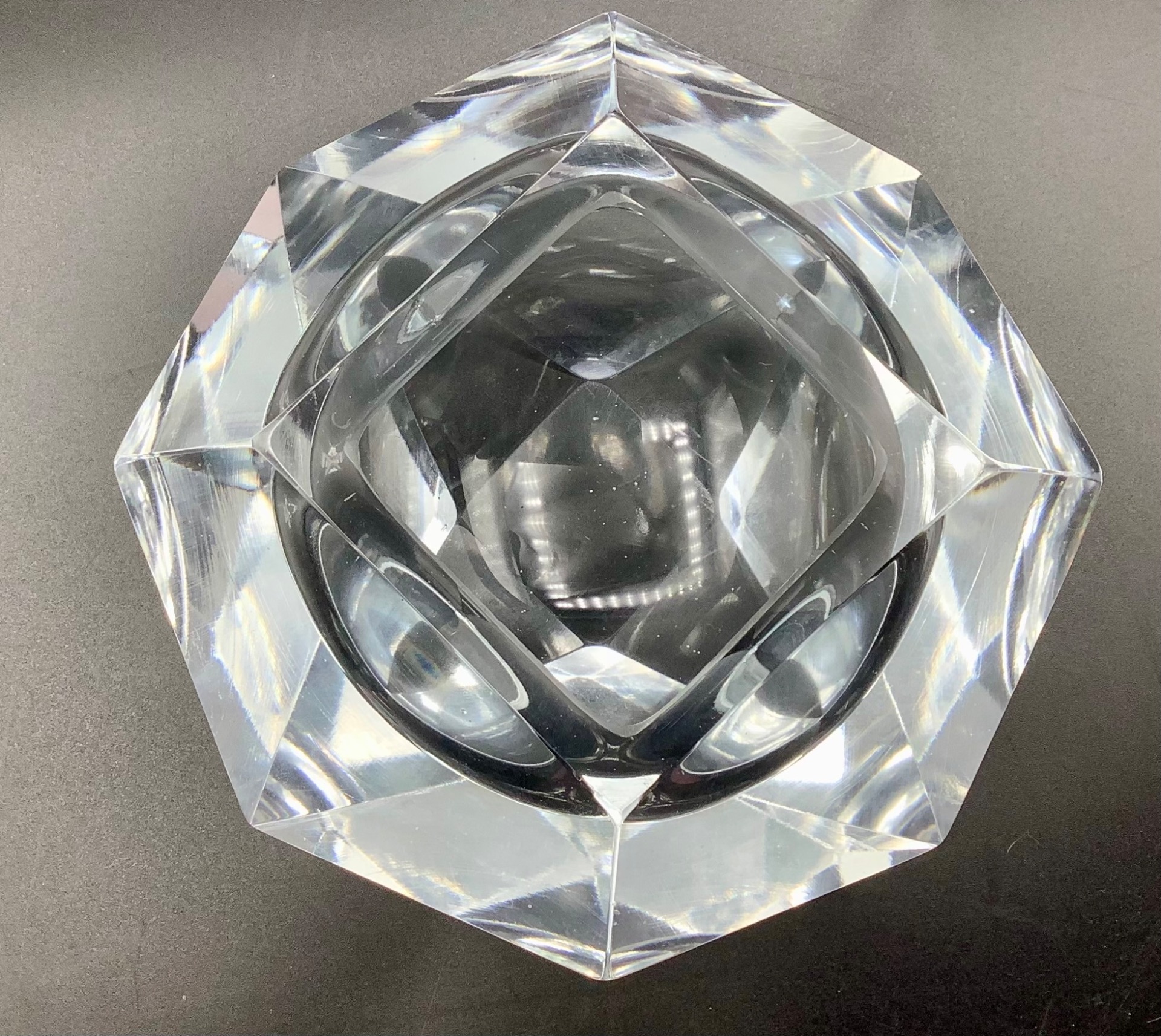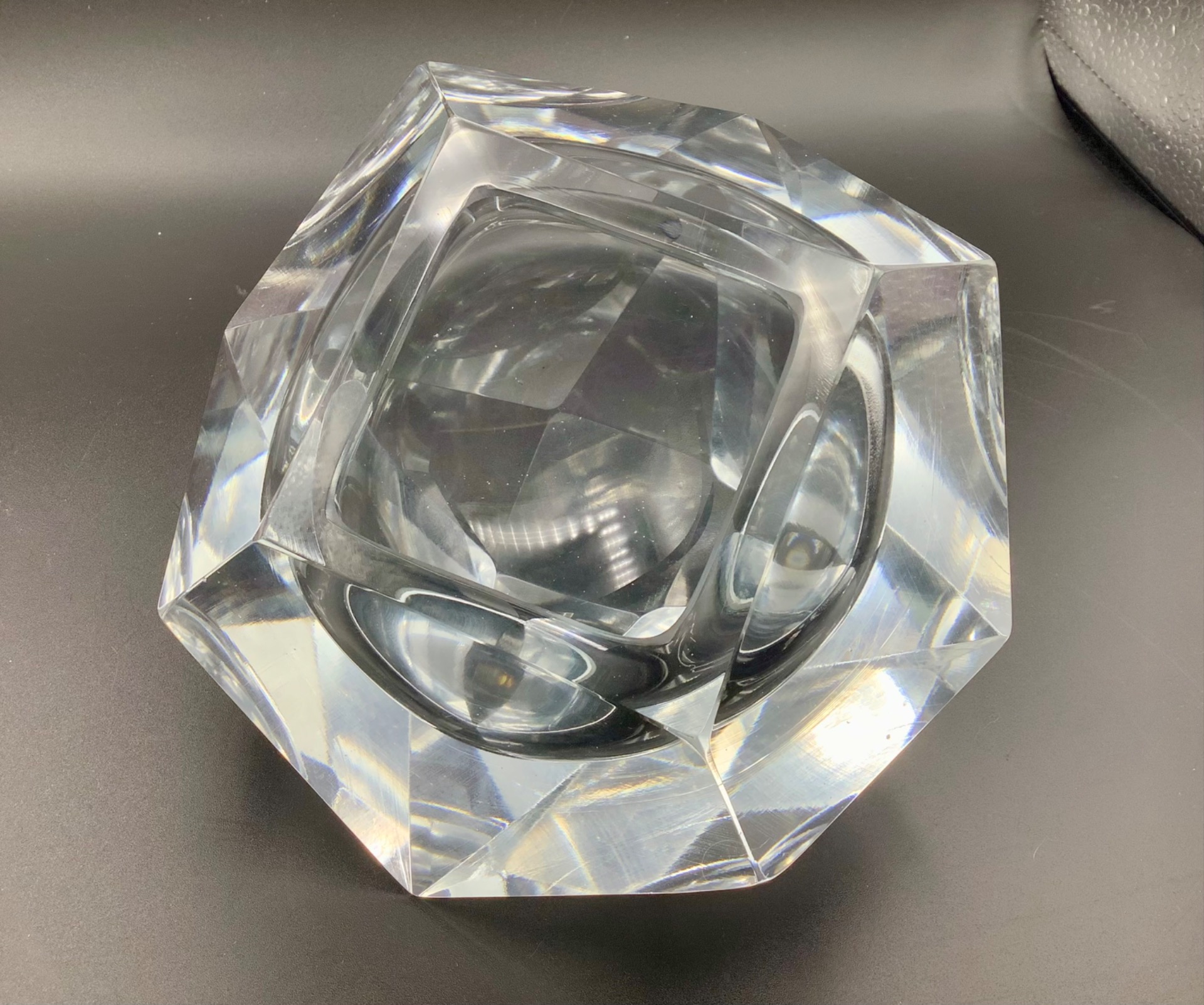 Grote facet geslepen glazen schaal waarschijnlijk Mandruzzato Murano Italië 2e helft 20e eeuw.
