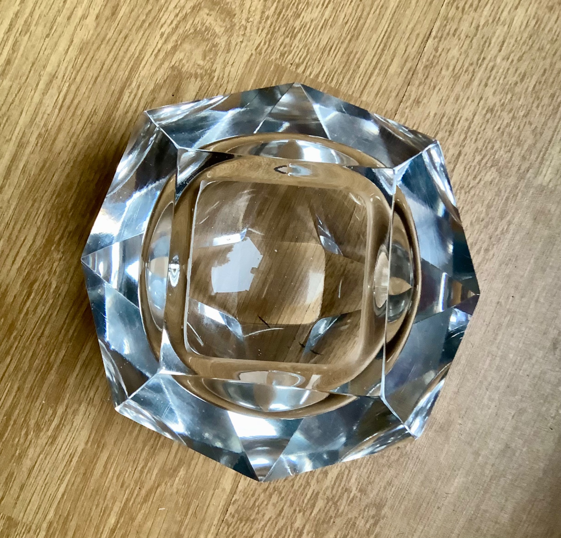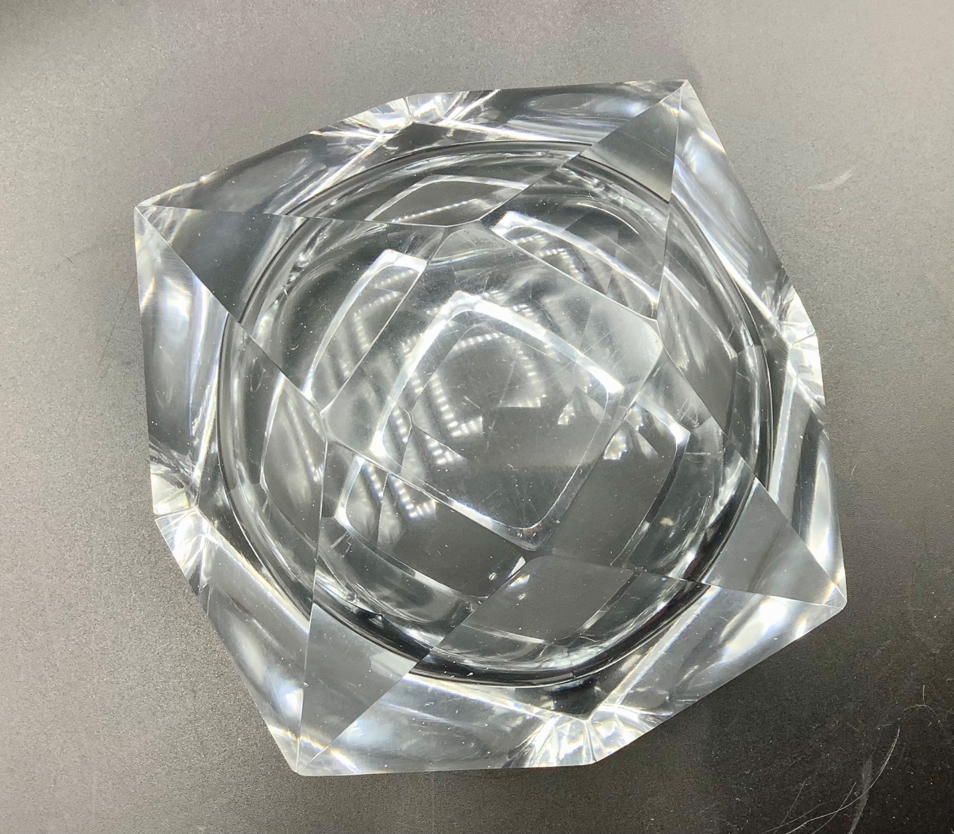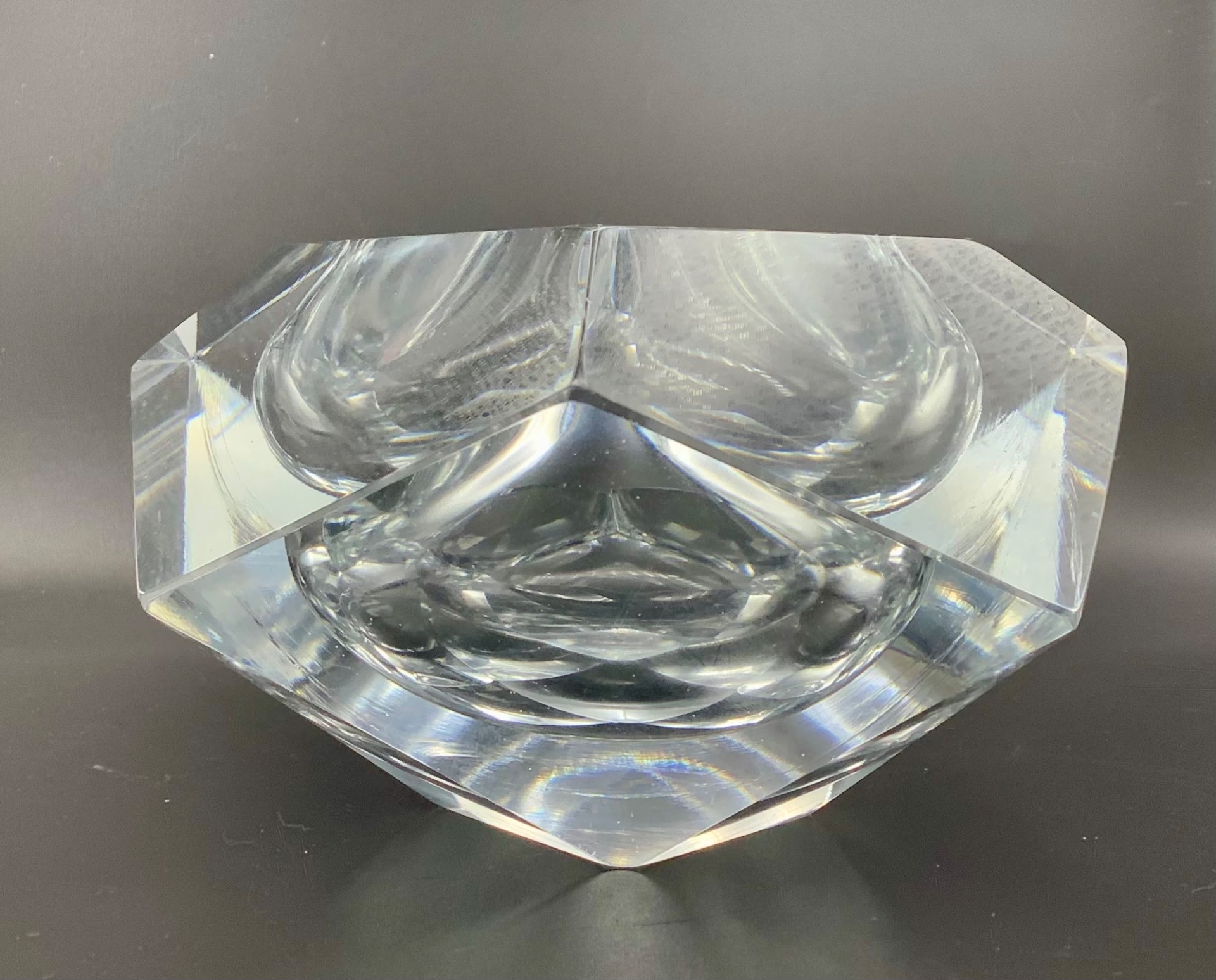 Grote facet geslepen glazen schaal waarschijnlijk Mandruzzato Murano Italië 2e helft 20e eeuw.