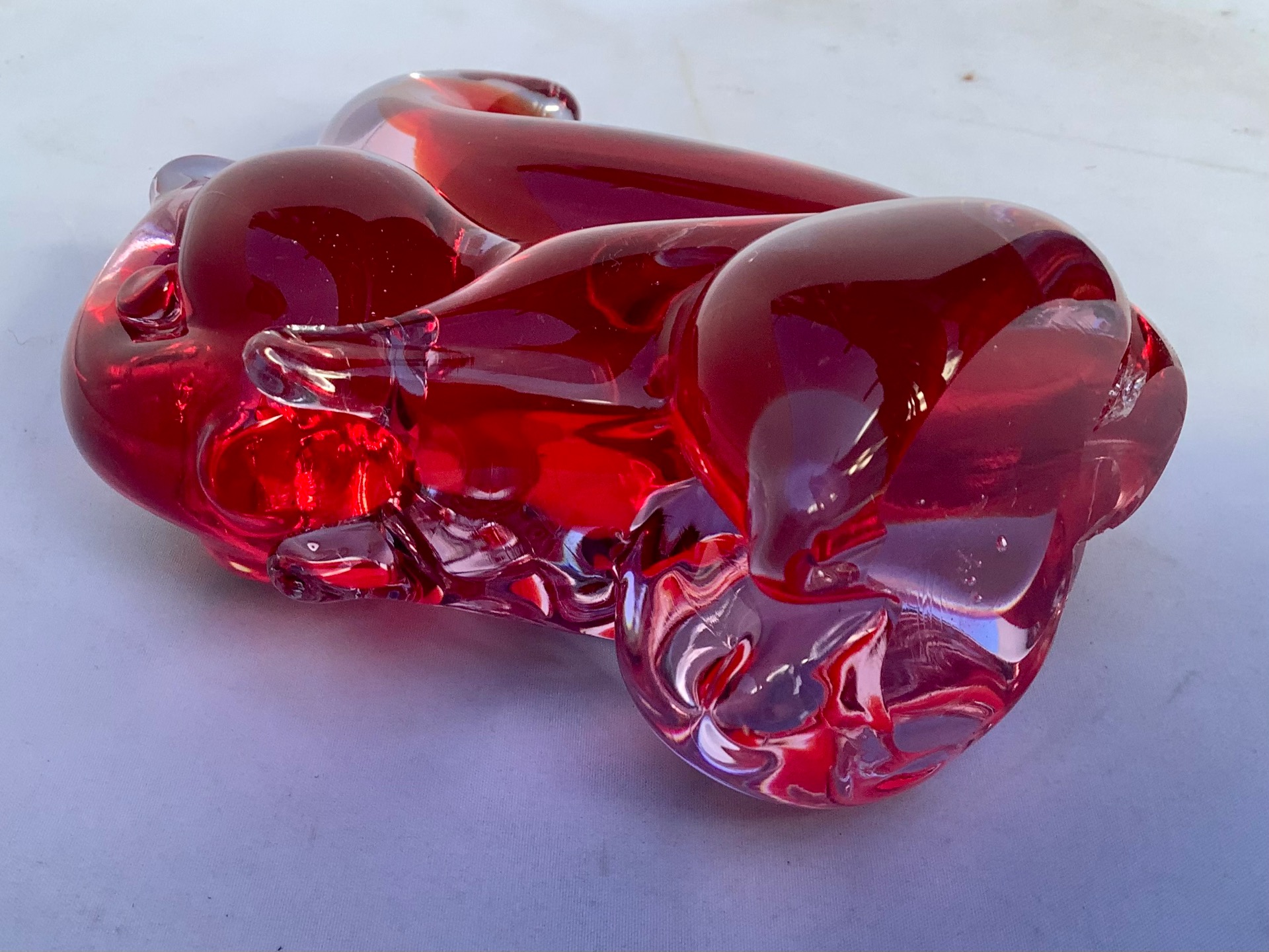 Handgemaakt van rood en Alexandriet glas door een van de berere