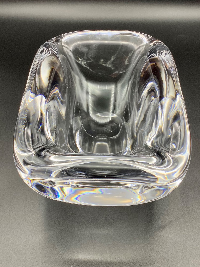 Prachtige zware kristallen schaal Vicke Lindstrand,Orrefors,Zweden ca 1950.